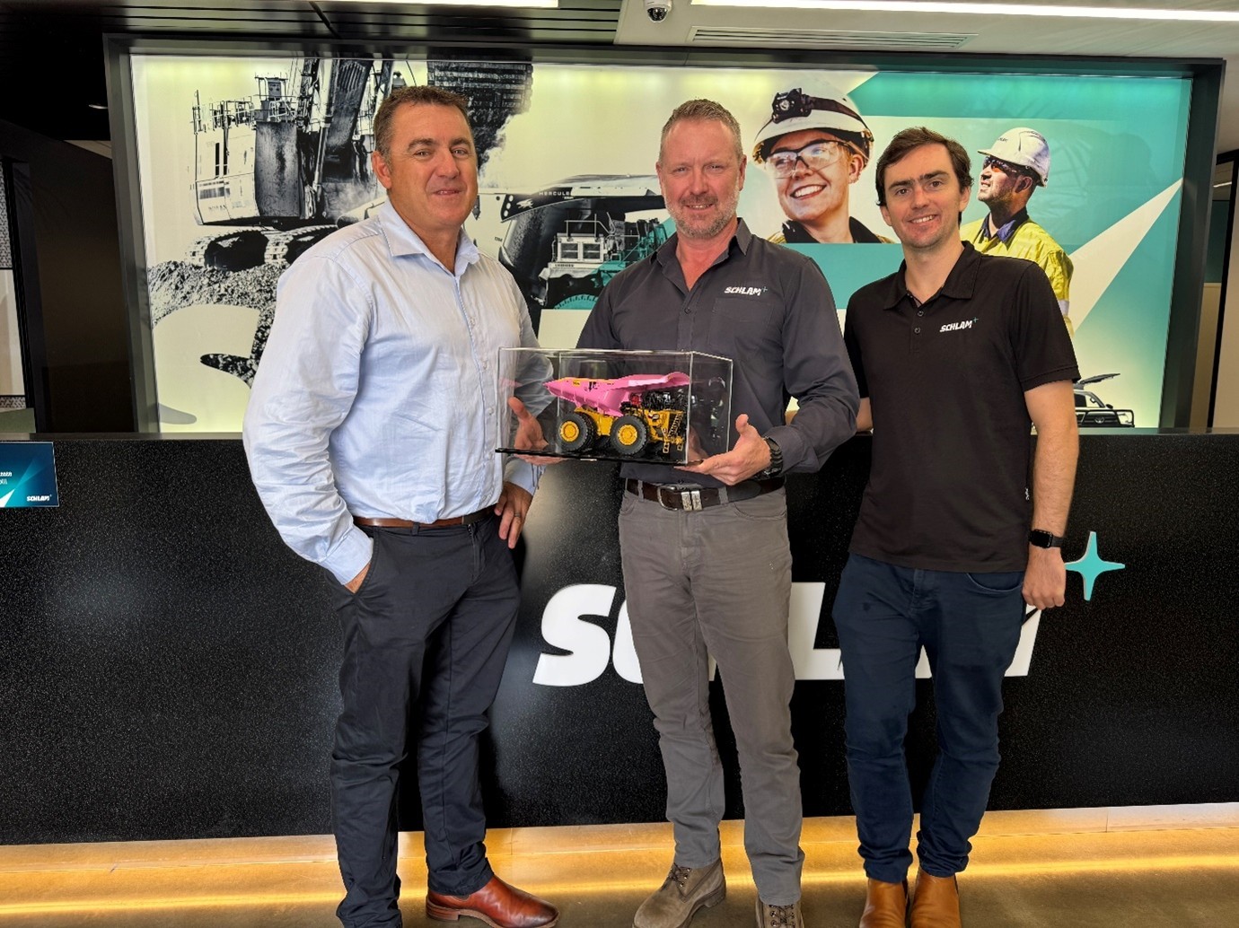 At Schlam, our purpose is to ensure that the customer experience is exceptional. That’s why when one of our valued customers hits a milestone, we like to celebrate with them. Recently, we had the privilege of presenting a specially made gift, which we proudly presented to Roy Hill’s Manager of Asset Management Mining, Kim Horton.